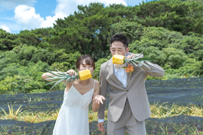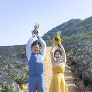私たちは、ウエディングフォトのみではなく、ファミリーフォトはもちろん、独自でパイナップルの収穫体験や三線体験などの観光体験、最期島の海に眠ることができる海洋散骨も用意しており、フォトウェディングだけではなく、これからも、また島に帰って来てもらうことを前提にサービスを提供しています。なので、1度だけのサービス提供というつもりではなく『どうやったらまたお二人に島を大好きになって、帰って来てもらえるだろうか?』という視点で全スタッフがサービスをしています。