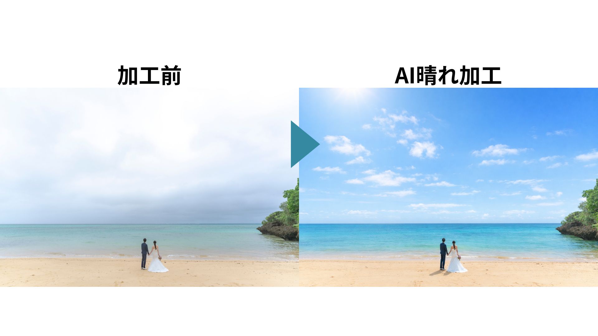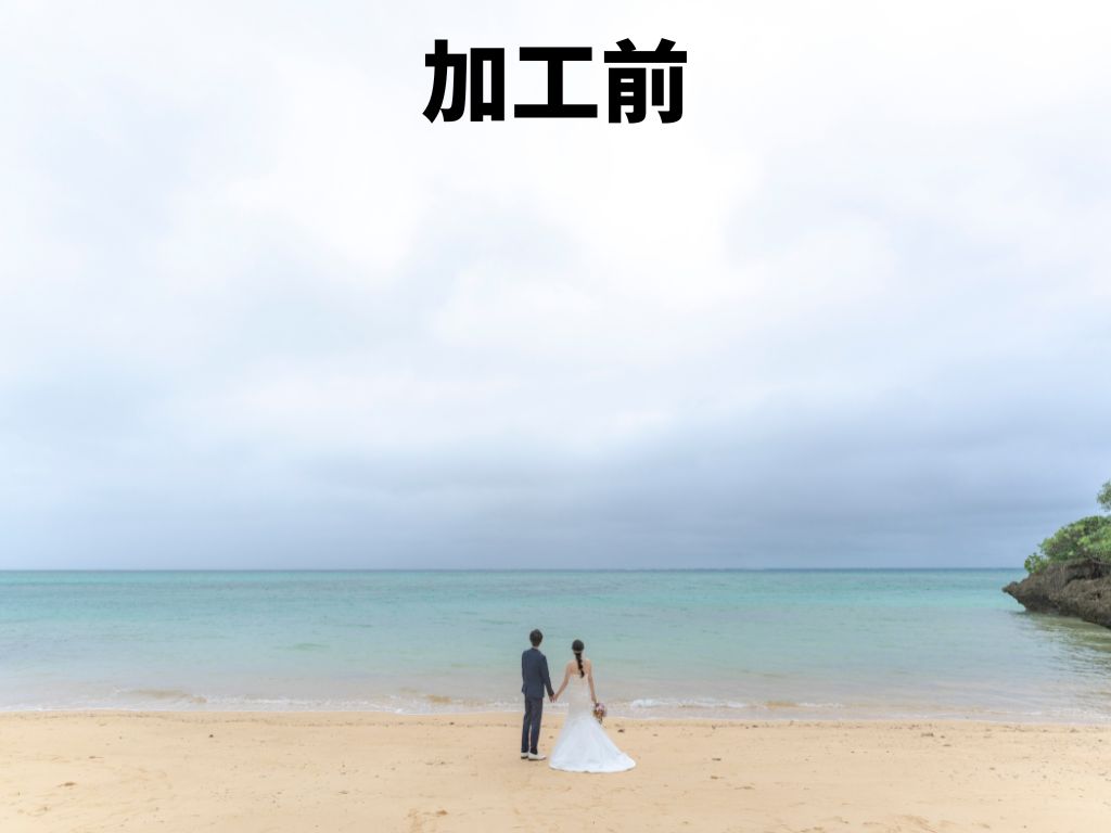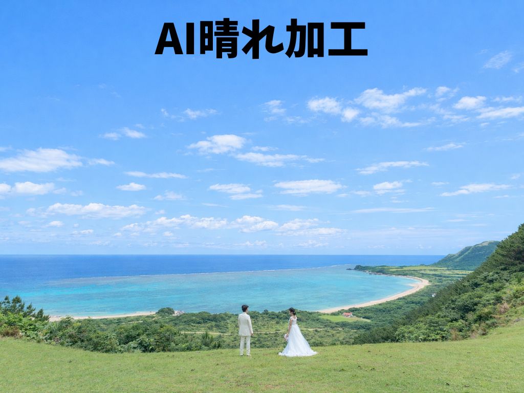 撮影ができても曇りやサンセットが出ないと悲しいですよね・・・BlueSodaでは全てのツアーに無料でAI晴れ加工が付帯しています。昼の海でも、サンセットでも、星空でも可能です。