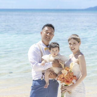 グアムで結婚式をした時に台風で青空で海の写真が撮れなかったのと、あまり写真の枚数がなくて結婚10周年の記念に家族でフォトウェディングを撮っていただけるところを探していて、インスタでBlueSodaさんに出会いました。 残念ながら天候には恵ま...