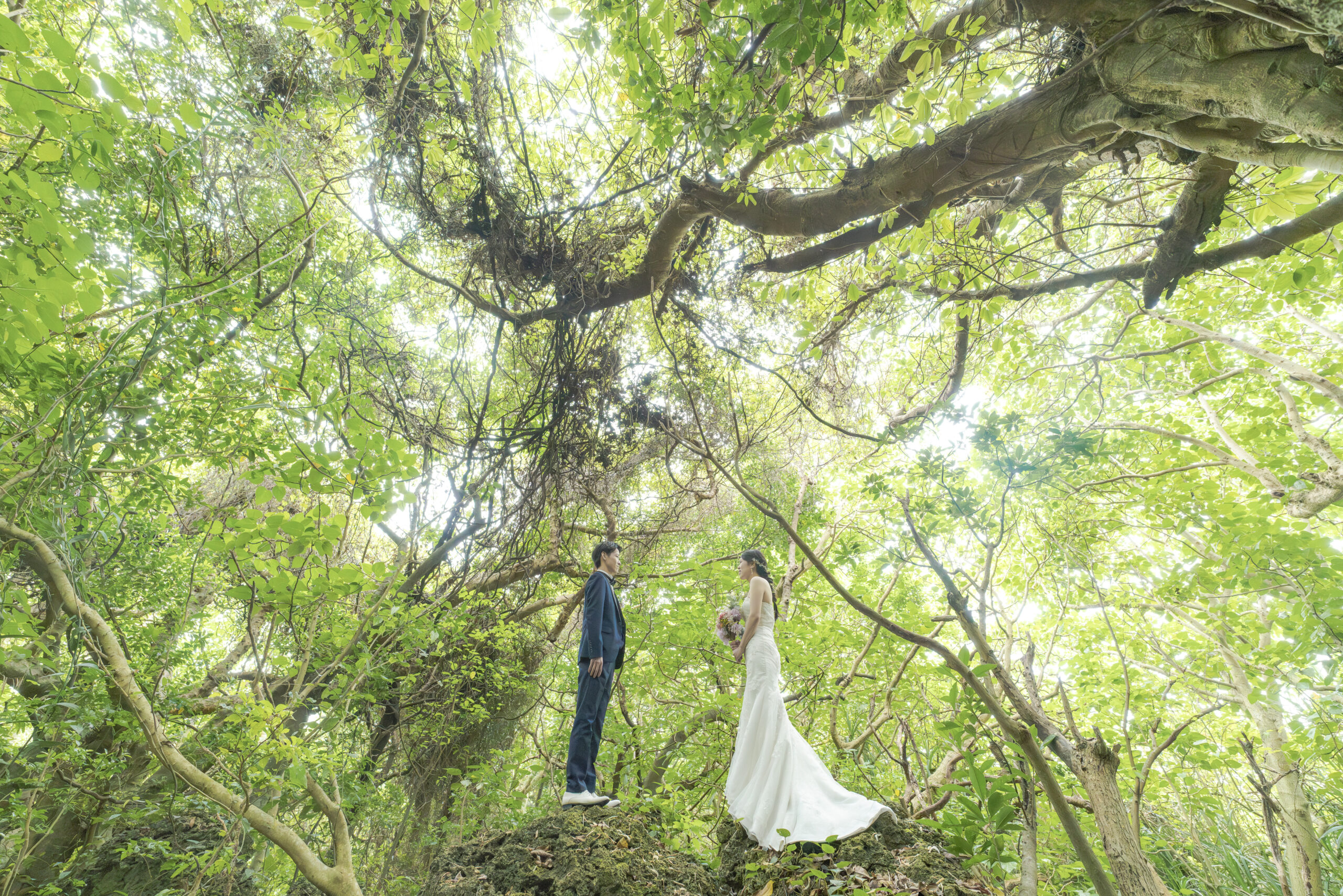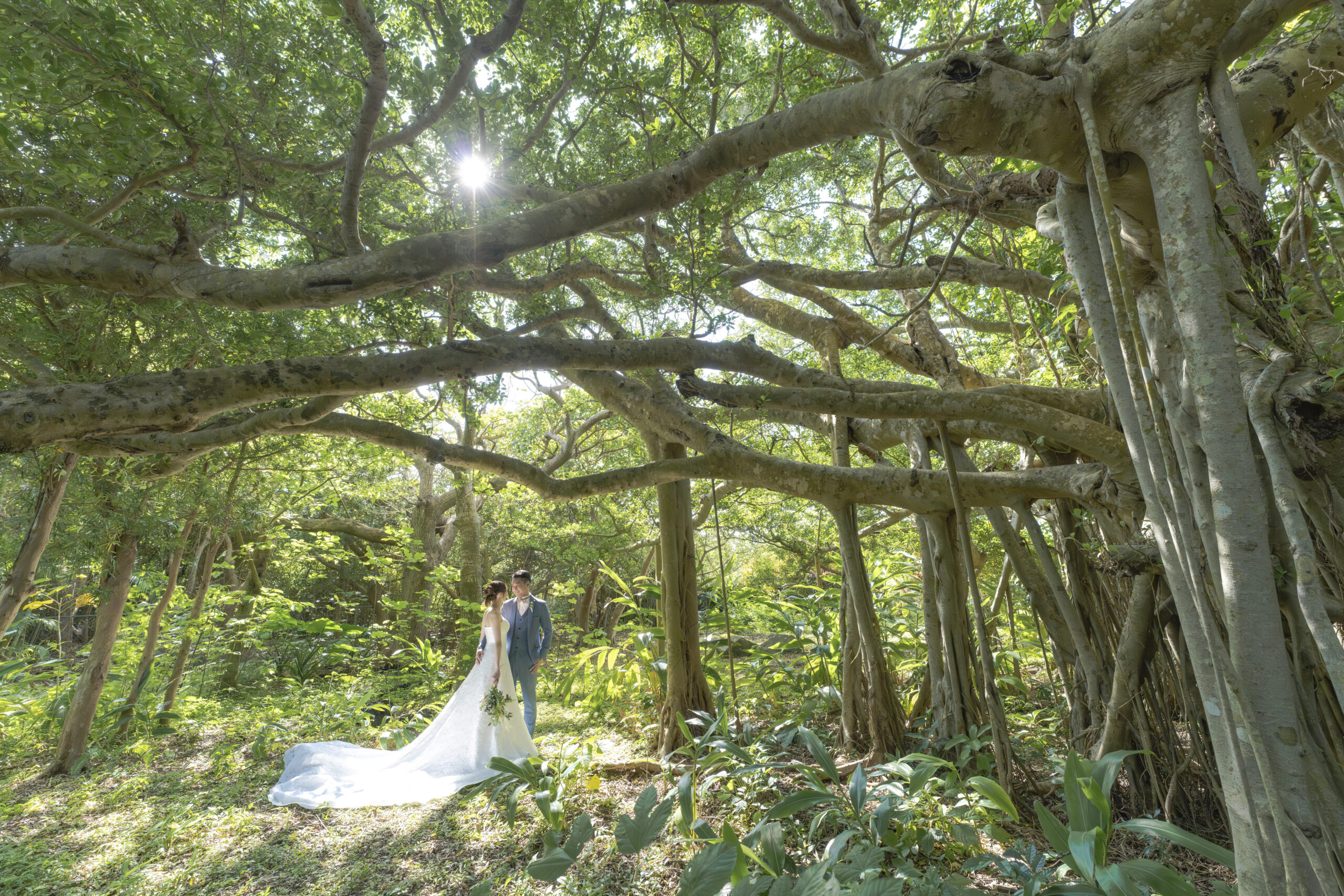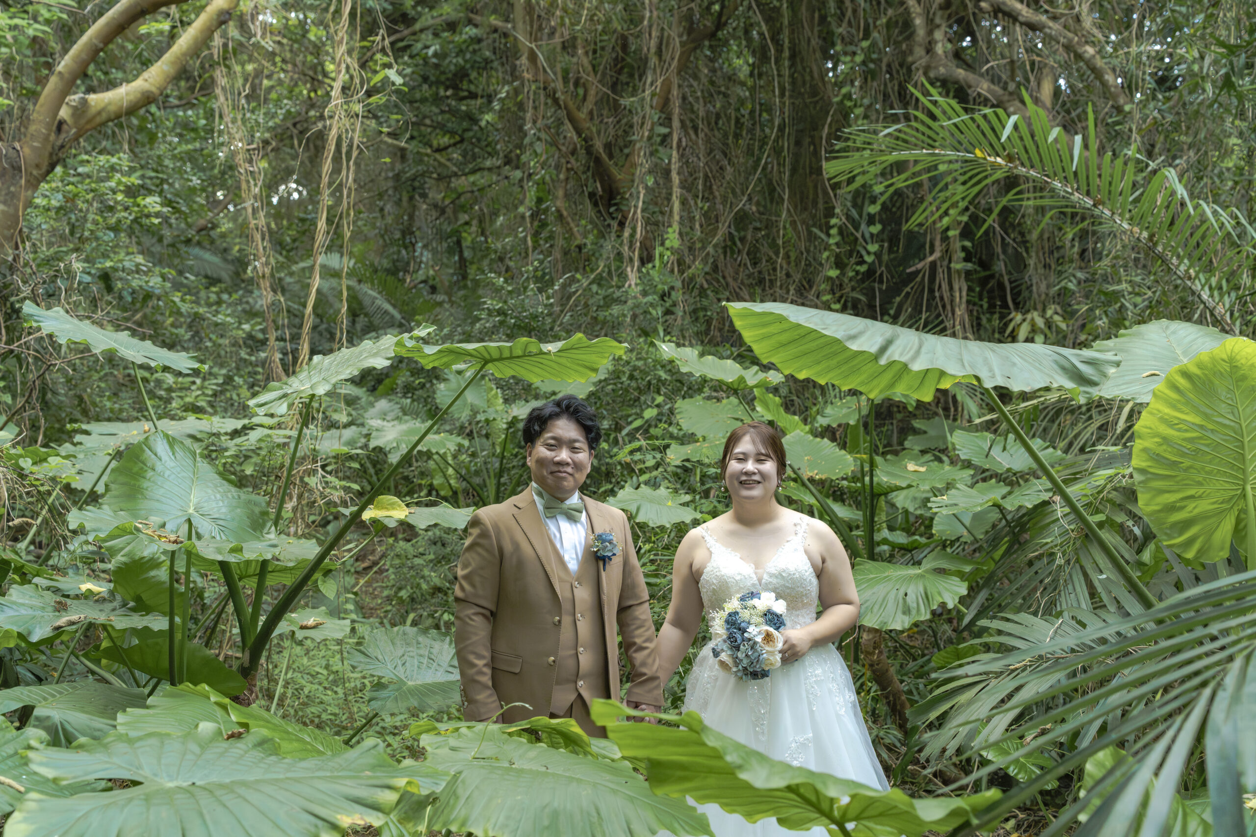 離島の天気予報は当たらないことが多く、急なスコールが多々あります。他の業者では、天気予報が悪い時には、スタジオ撮影やチャペル撮影を勧められることが多いです。また、多くの業者では、雨天保障はありますが、撮影施工率は70%代であることが多いという実態もあります。